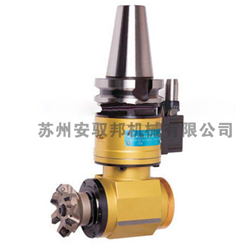 角度頭是一種機床附件,機床安上角度頭后刀具旋轉中心線可以與主軸旋轉中心線成角度加工工件。原產(chǎn)于歐洲,現(xiàn)已廣泛應用于航空、汽車、模具等機械加工的各個領域。使用角度頭,無需改變機床結構就可以增大其加工范圍和適應性,使一些用傳統(tǒng)方法難以完成的加工得以實現(xiàn),并能減少工件重復裝夾,提高加工精度和效率。主要用于立式或臥式加工中心、鏜床、龍門銑床等,其中輕型可以裝在刀庫中,并可以在刀庫和機床主軸之間自由轉換;中型及重型擁有較大的剛性和扭矩,可適用于重切削加工需求。因角度頭擴充了機床的使用性能,相當于給機床增加了一根軸,甚至在某些大型工件不易翻轉或是高精度要求的情況下,比第四軸更實用。 FM型面銑刀專用小型90度直角銑頭它的特點是具備傳統(tǒng)角度頭的特點,本體與角度頭可360度自由回轉;可直接連接面銑刀,加工快速穩(wěn)定;可自動換刀,是提高效率、批量生產(chǎn)必備的工具。